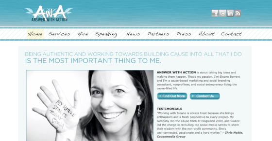 This morning, I woke up around 3 am from being jet-lagged (just got back from Asia yesterday) and was going through emails and my feedreader when I saw some very cool news from my friend Sloane Berrent — she launched her new marketing and strategy consulting web site, Answer with Action. What is it?